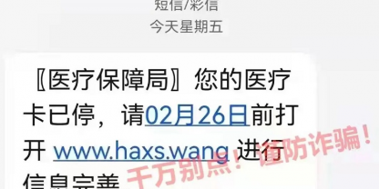 近期有不法分子利用“醫(yī)保停用”等相關(guān)題材,向參保人員發(fā)送詐騙短信,點(diǎn)開(kāi)鏈接后跳轉(zhuǎn)的頁(yè)面與國(guó)家醫(yī)療保障局官方網(wǎng)頁(yè)非常相似,但內(nèi)含木馬病毒鏈接,如果按頁(yè)面上的提示填寫(xiě)身份證號(hào)、銀行卡號(hào)...